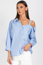 Укороченная блузка с пышными рукавами-фонариками выполнена из легкого хлопкового поплина. Супатная застежка на пуговицы из натурального перламутра. Внизу кулиса с лентами из основного полотна. В изделии будет комфортно, даже в самое жаркое время года. Подходит для любой фигуры. Сочетается в костюме с кюлотами D24.233 и юбкой D26.179