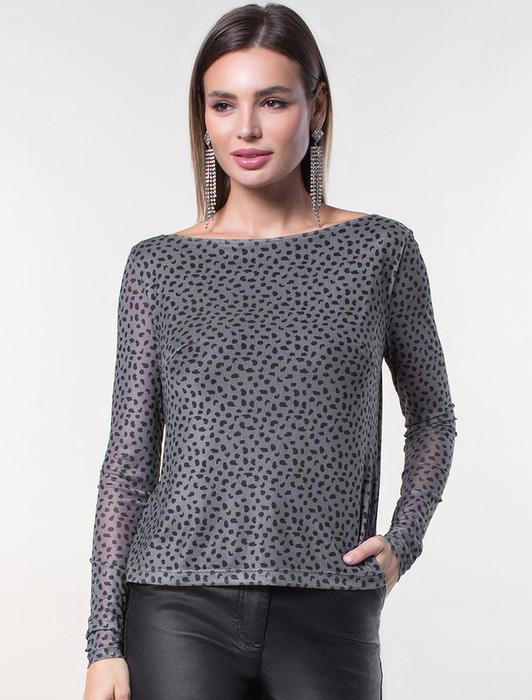 Vilatte Блузка из сетки на подкладе из тонкой вискозы D29.249 серый_леопард