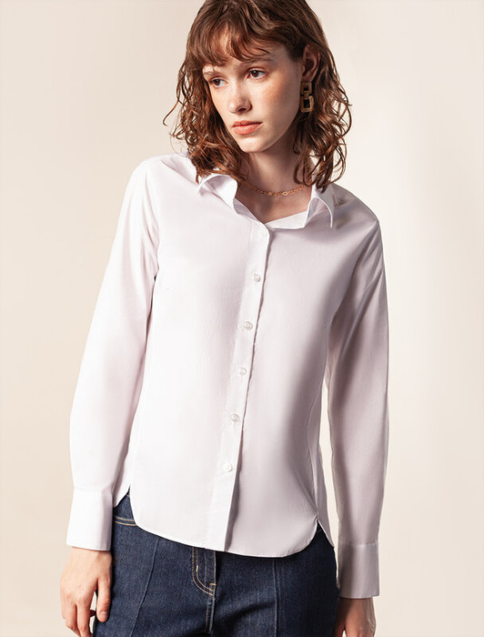 Блузка приталенного силуэта выполнена из эластичного хлопка. Безупречно сидит по фигуре не сковывая движений. Материал обладает высокой формоустойчивостью и воздухопроницаемостью, поддержвая оптимальный микроклимат в течении всего дня. Классический образ можно собрать в паре с черными прямыми брюками или юбкой с разрезами, повседневный расслабленный с джинсами или брюками с пу-покрытием.