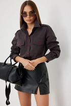 Совместные покупки Нижний Тагил Женская одежда Блузки, рубашки — 27.03 Vilatte Блузка свободного силуэта с золотистыми пуговицами D29.274 черный
