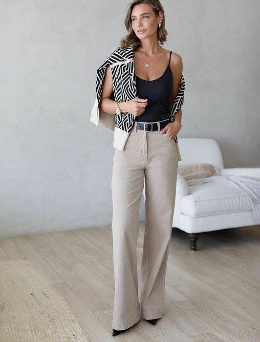 Совместные покупки Нижний Тагил Женская одежда Брюки — Vilatte Брюки из эластичного микро-вельвета D24.278 светло-бежевый