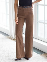 Брюки свободного кроя «трубы» выполнены из мягкого хлопкового микро-вельвета с добавлением эластана. Изделие комфортно садится по фигуре и не сковывает движения. Модель с пятью карманами, как у джинсов дополнена высококачественной фурнитурой с фирменным логотипом бренда. Идеально впишутся в повседневный образ, со свитером крупной вязки, курткой-косухой, ботинками на грубой подошве, челси и казаками.
