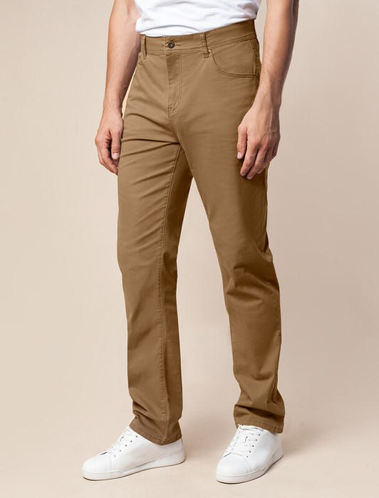 Брюки изготовлены из прочного и эластичного хлопка. Ткань из отборного шелковистого хлопка с эластана почти не мнется. Чиносы модель которая комфортно садится по фигуре, не сковывая движения. Совет стилиста: можно создать монохромный непринужденный образ с футболкой и кедами в тон. Для прохладной погоды с ботинками и свитером крупной вязки.