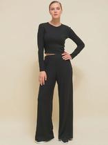 Vilatte Брюки палаццо широкие из струящегося сатина D24.304 черный