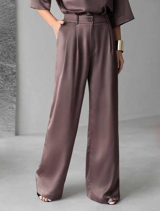 Совместные покупки Нижний Тагил Женская одежда Брюки — Vilatte Брюки палаццо широкие из струящегося сатина D24.304 кофейный
