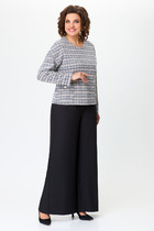 Брюки свободного кроя выполнены из костюмной ткани в полоску. Модель с карманами и поясом на резинке дополнена регулируемым шнурком из основной ткани. Изделие не сковывает движений и подходит для любого типа фигуры. Сочетается в костюме с жилетом D27.001