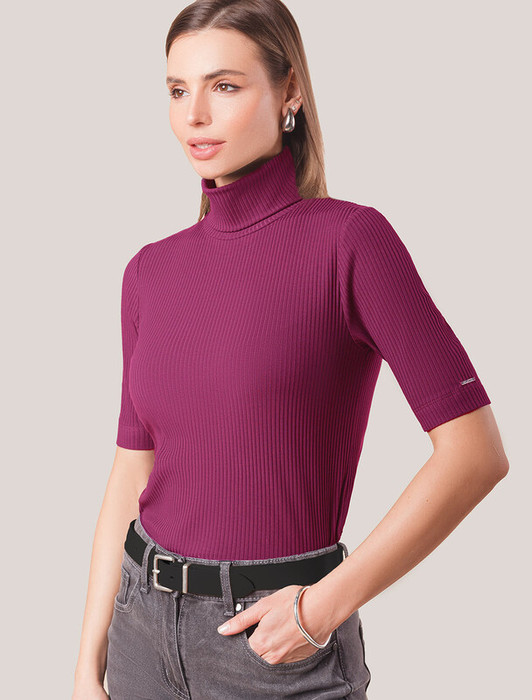 Водолазка с коротким рукавом выполнена из фактурного трикотажа в рубчик. Модель идеально сидит по фигуре не сковывая движения. Хлопковый трикотаж поддерживает оптимальную температуру тела, поэтому в изделии будет комфортно в течении всего дня. Наличие эластана в составе гарантирует формоустойчивости. Водолазка отлично впишется в деловой дресс-код и подойдет для повседневного аутфита.