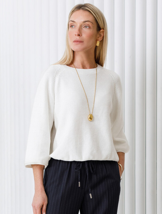 Джемпер фактурной вязки выполнен из хлопковой пряжи. Модель с укороченным рукавом легким фонариком связана изнаночной петлей. Благодаря натуральному составу и воздушной фактуре в изделии будет комфортно в любое время года. Свободный силуэт подходит для любой фигуры. Лаконичная модель для любого гардероба.