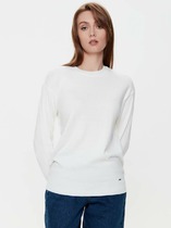 Джемпер фактурной вязки выполнен из хлопка с добавлением кашемира. Модель с V-вырезом с вывязанным орнаментом цепи. Мягкая и очень приятная пряжа совершенно не колется, сохраняет тепло при этом не перегревая, гарантируя безупречный комфорт.