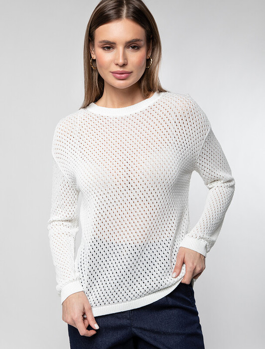 Совместные покупки Нижний Тагил Женская одежда Джемперы, свитеры, водолазки — Vilatte Джемпер из гладкой вискозы с лиоцеллом D39.630 белый