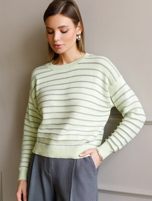 Совместные покупки Нижний Тагил Женская одежда Джемперы, свитеры, водолазки — Vilatte Джемпер из хлопка с люрексом D39.342 светло-фисташковый