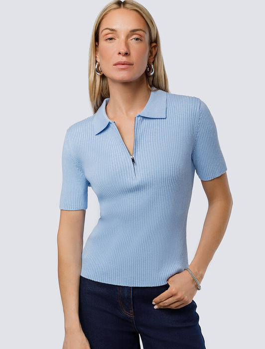 Vilatte Джемпер-поло с застежкой на молнии из хлопка с кашемиром D39.351 голубой