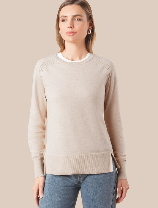 Vilatte Джемпер тонкой вязки из хлопка с кашемиром D39.350 бежевый меланж