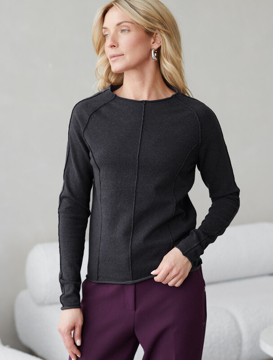 — 27.03 Vilatte Джемпер тонкой вязки из хлопка с нейлоном D39.354 черный