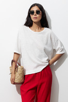 Vilatte Джемпер тонкой вязки из вискозы с нейлоном D39.337 натуральный белый