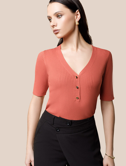 Заказать Vilatte Джемпер тонкой вязки из вискозы с нейлоном D39.337 терракотовый