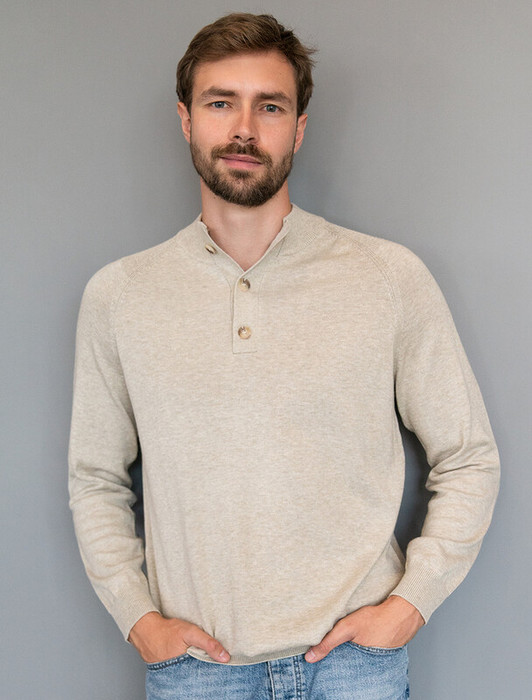 Совместные покупки Нижний Тагил Мужская одежда Джемперы, свитеры — Vilatte Джемпер тонкой вязки с застежкой на пуговицы U39.004 св.бежевый меланж