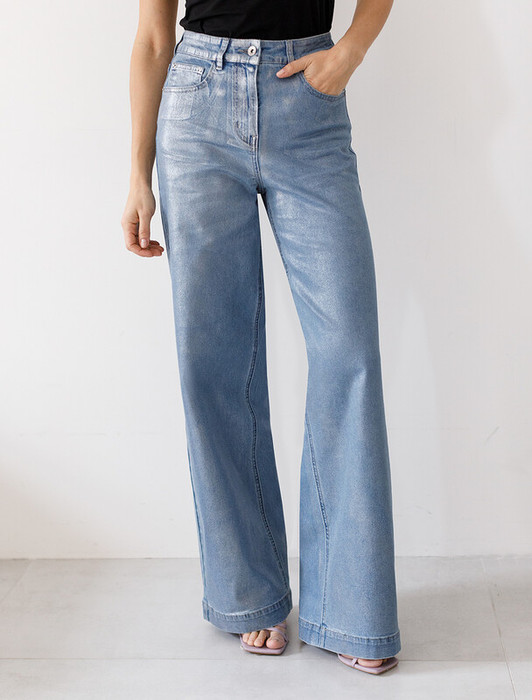 Совместные покупки Нижний Тагил Женская одежда Джинсы — Vilatte Джинсы-трубы с металлизированным покрытием D54.219 голубой-серебряный