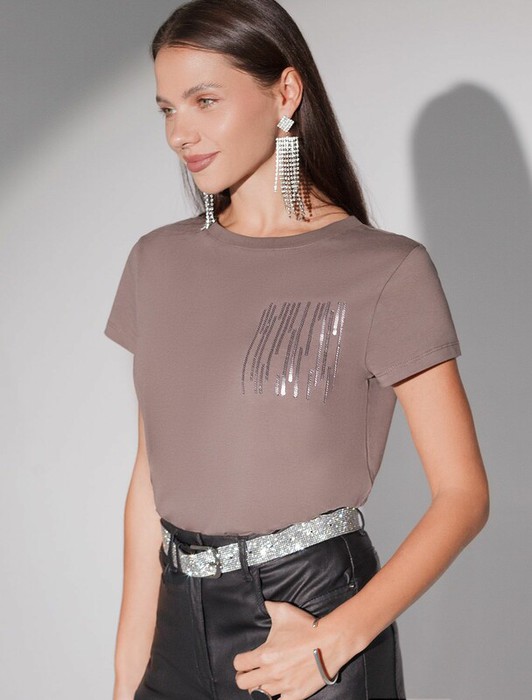 Совместные покупки Нижний Тагил Женская одежда Футболки — Vilatte Футболка D49.135 кофейный_блестки