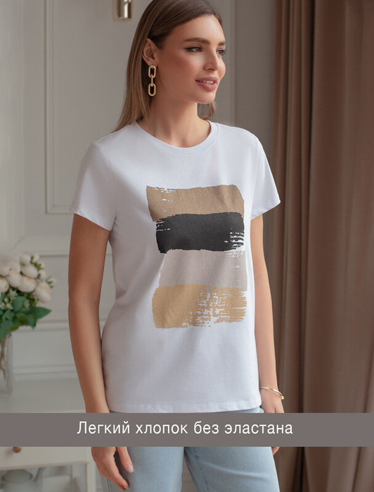 Совместные покупки Нижний Тагил Женская одежда Футболки — 22.03 Vilatte Футболка из 100% хлопка с авторским принтом. D49.092 белый_art