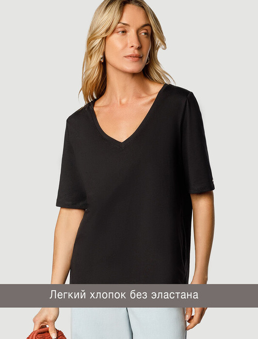 Совместные покупки Нижний Тагил Женская одежда Футболки — Vilatte Футболка из 100% хлопка с V-образным вырезом D49.091 черный
