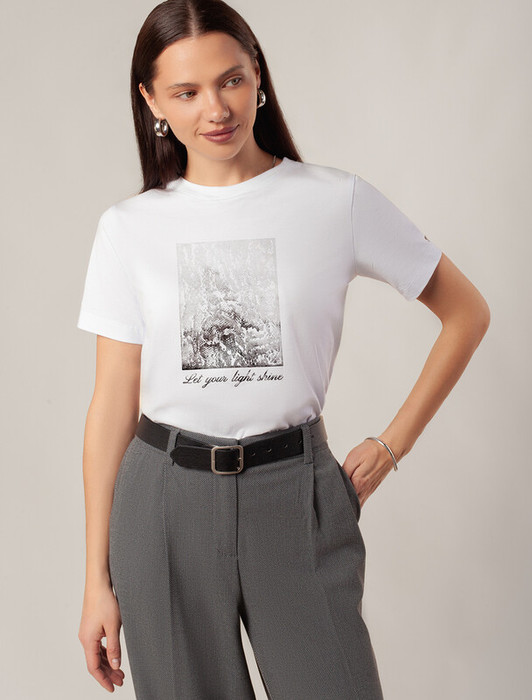 Vilatte Футболка из премиального хлопка с авторским принтом D49.110 белый_light