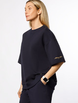Футболка выполнена из премиального хлопка. Базовая модель с V-вырезом впишется в любой гардероб в любом сезоне. Наличие эластана в составе изделия гарантирует комфорт и формоустойчивость. На рукаве металлический логотип бренда.