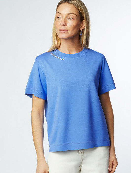 Совместные покупки Нижний Тагил Женская одежда Футболки — Vilatte Футболка из премиального хлопка с принтом фольгой D49.098 васильковый_do