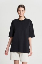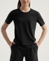 Футболка выполнена из фактурного трикотажа в широкий рубчик. Модель идеально сидит по фигуре не сковывая движения. Хлопковый трикотаж поддерживает оптимальную температуру тела, поэтому в изделии будет комфортно в течении всего дня. Наличие эластана в составе гарантирует формоустойчивости. Базовая модель впишется в любой гардероб.