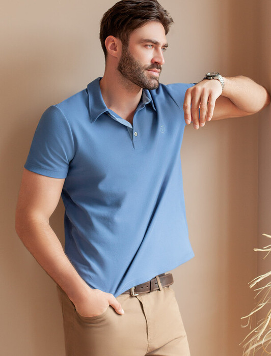 Vilatte Футболка-поло из фактурного трикотажа U49.047 св.синий
