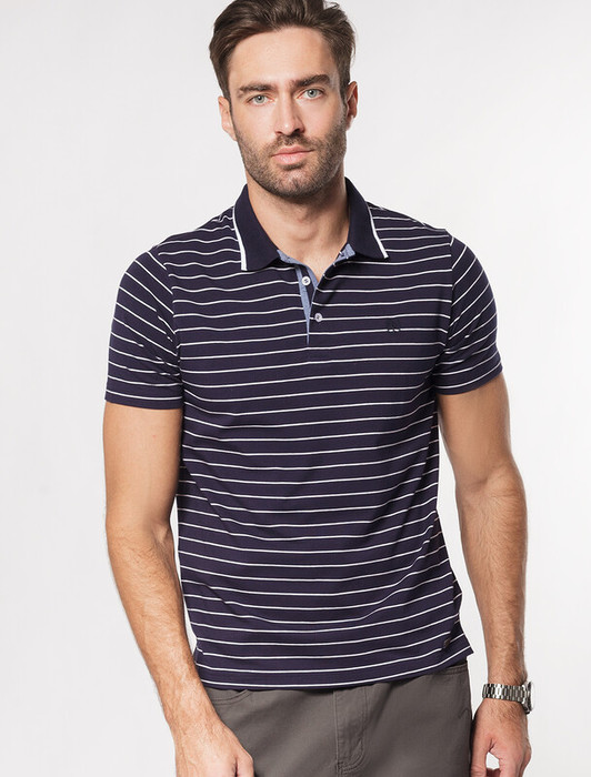 Совместные покупки Нижний Тагил Мужская одежда Футболки — Vilatte Футболка-Поло из премиального хлопка с эластаном U49.025 синий-белый