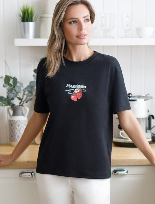 Совместные покупки Нижний Тагил Женская одежда Футболки — Vilatte Футболка с принтом свободная эластичная из премиального хлопка D49.136 ч