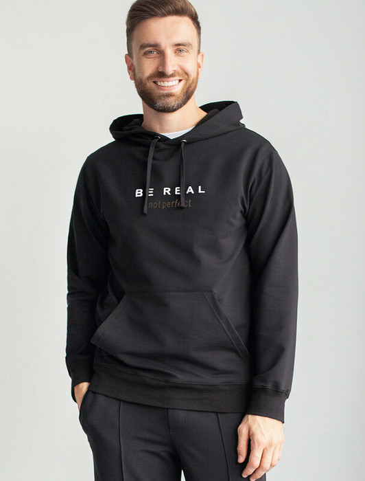 Совместные покупки Нижний Тагил Мужская одежда Толстовки — Vilatte Худи из эластичного футера-двухнитки с принтом U49.015 черный