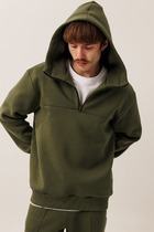 Лаконичное худи выполнено из эластичного футера. Мягкий и плотный материал хорошо пропускает воздух, а наличие ПЭ в составе способствует формоустойчивости  и легкости изделия. Модель дополнена логотипом бренда. Сочетается в костюме с брюками U44.005