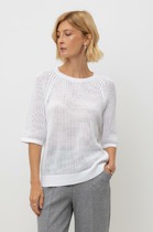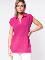 Летнее полупрозрачное поло тончайшей вязки выполнено из мягкой пряжи на основе хлопка и вискозы. Идеально подойдет в жару, с мини-топом или в сочетании с купальником. Также отлично впишется в многослойные образы с джинсами и жакетом. Модель дополнена металлическим логотипом бренда.