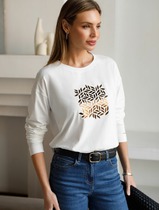 Совместные покупки Нижний Тагил Женская одежда Джемперы, свитеры, водолазки — Vilatte Лонгслив с принтом из премиального хлопка с эластаном D49.148 молочный_л