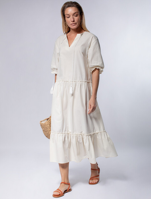 Vilatte Платье из легкого хлопкового поплина D22.197 натуральный_белый