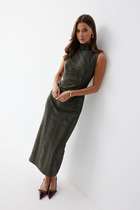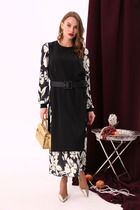 Элегантное платье прямого кроя черного цвета выполнено из воздушной сетчатой ткани с прозрачными рукавами, придающими образу лёгкую игривость. Мягкая вискозная подкладка обеспечивает комфорт, сохраняя при этом эффект полупрозрачности. Универсальный черный цвет делает платье идеальным для базового гардероба.