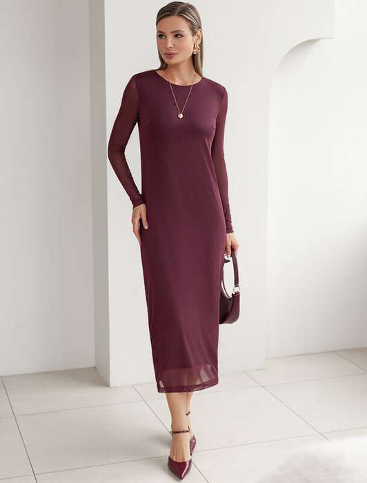 Заказать Vilatte Платье из сетки с подкладкой D22.238 бургунди