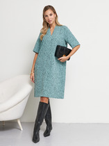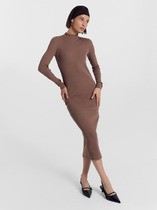 Платье тонкой вязки выполнено из хлопка. Лаконичная модель с высоким воротом как у водолазки дополнена манжетами с золотистыми пуговицами. Изделие свободно сидит по фигуре и не сковывает движений. Мягкая пряжа очень приятная к телу не колется и сохраняет тепло при этом не перегревая.