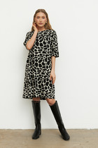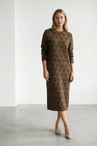 Платье жаккардовой вязки выполнено из мягкой пряжи на основе вискозы с добавлением кашемира. Модель свободного силуэта подходит для любой фигуры. Нежная пряжа очень комфортно ощущается на теле, сохраняя оптимальное тепло при этом не перегревая. Совет стилиста: жаккардовое платье отличная инвестиция в базовый гардероб, которая поможет создать дорогие образы. Носите с высокими сапогами удлиняя силуэт или плотными колготками.