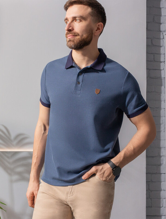 Поло выполнено из фактурного премиального хлопка. Модель с контрастным воротом и манжетами дополнили нашивкой с логотипом бренда из эко-кожи. Плетение ворота и манжет гладкое. Пуговицы темно-серебряного матового цвета. Изделие хорошо тянется, обеспечивая свободу движений, и надолго сохраняет безупречный внешний вид.