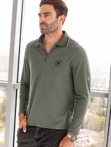 Поло прямого силуэта выполнено из фактурного трикотажа. Эластичный хлопковый материал хорошо пропускает воздух, а одежда из него не пилингуется и комфортно облегает фигуру. Однотонная модель с длинными рукавами и контрастной пуговичной планкой украшена небольшим вышитым логотипом бренда.
