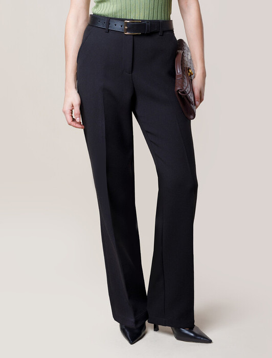Брюки прясого кроя выполнены из супер-плотной эластичной поливискозы. Модель ткань идеально подойдет для повседневных образов и впишется в офисный дресс код. Изделие с высокой посадкой визуально стройнит и вытягивает силуэт, удлиняет ноги. Свободный силуэт подходит для любой фигуры.