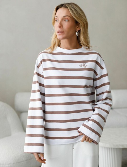 Свитшот свободного кроя выполнен из эластичного футера двухнитки. Модель дополнена вышитым логотипом бренда. Свободный силуэт не сковывает движений и подходит для любой фигуры. Наличие эластана в составе гарантирует комфорт и формоустойчивость изделия.