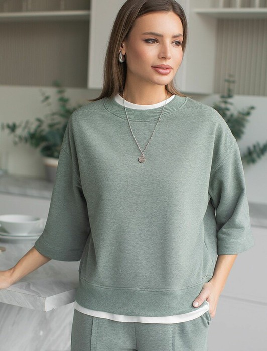 Свободный свитшот цвета макиато с эффектом меланж выполнен из мягкого петельчатого футера двухнитки с добавлением эластана, что обеспечивает комфортную посадку и комфорт. Материал отличается мягкостью и приятной текстурой, позволяя коже дышать и обеспечивая максимальное удобство при носке, а так же хорошей износостойкостью и сохраняет форму даже после многочисленных стирок. Круглый ворот и широкие рукава средней длины придают свитшоту стильный и современный вид и делают образ расслабленным и непринужденным, такой вариант отлично сядет на большие размеры, подчеркивая достоинства фигуры. .Джемпер идеально подходит для повседневной носки и отлично подойдет тем, кто ценит удобство и свободу движений без компромиссов по стилю. Этот свитшот станет отличным выбором в прохладную погоду в комплекте с бомбером D49,141 или уютным дополнением к домашнему образу в комплекте с брюками D44.157