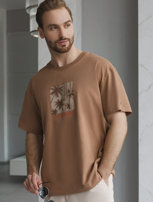 Совместные покупки Нижний Тагил Мужская одежда Футболки — Vilatte Свободная футболка с авторским принтом U49.048 коричневый_just