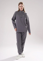 Брюки свободного кроя выполнены из эластичного футера-двухнитки. Модель дополнена защипами и боковыми карманами как у классических брюк и одним задним карманом. Эластичный пояс на резинке с шнурком из репсовой ленты и металлической фурнитурой. Брюки сочетаются в костюме с футболкой D49.031, D49.085, бомбером D49.038 и паркой D49.075