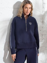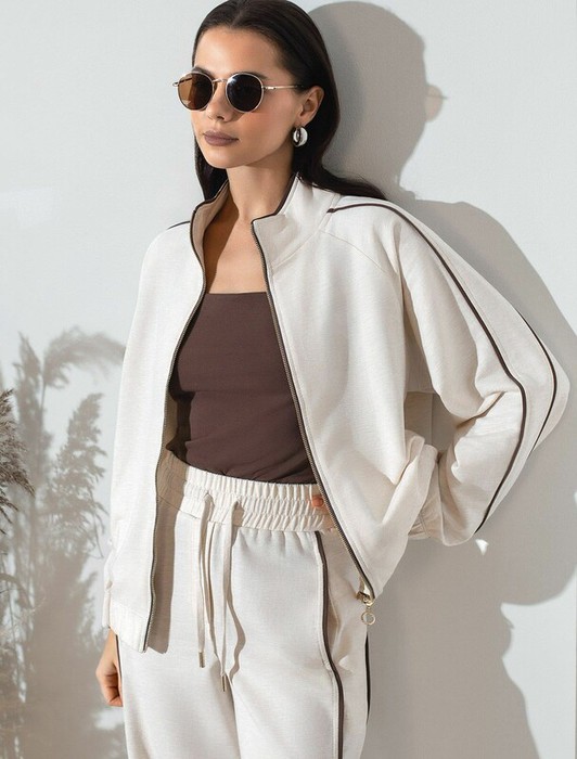 Совместные покупки Нижний Тагил Женская одежда Джемперы, свитеры, водолазки — Vilatte Свободный бомбер с лампасами на молнии из петельчатого футера двухнитки