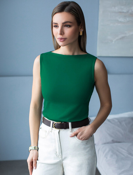 Совместные покупки Нижний Тагил Женская одежда Майки, топы — Vilatte Топ из премиального хлопка с эластаном D43.201 зеленый